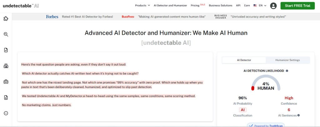 A lot of writers run AI text through a humanizer and assume they're covered. We tested whether these two AI detection tools can actually catch what slips through. Undetectable.ai vs MyDetector.ai goes head to head