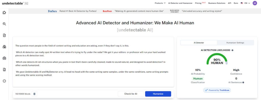 Undetectable AI started as a humanizer, paste in AI text, get back something that reads more human.