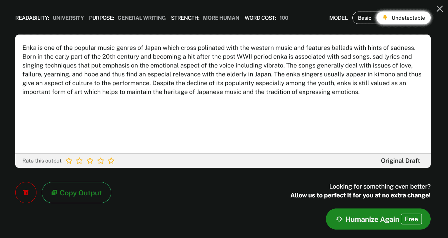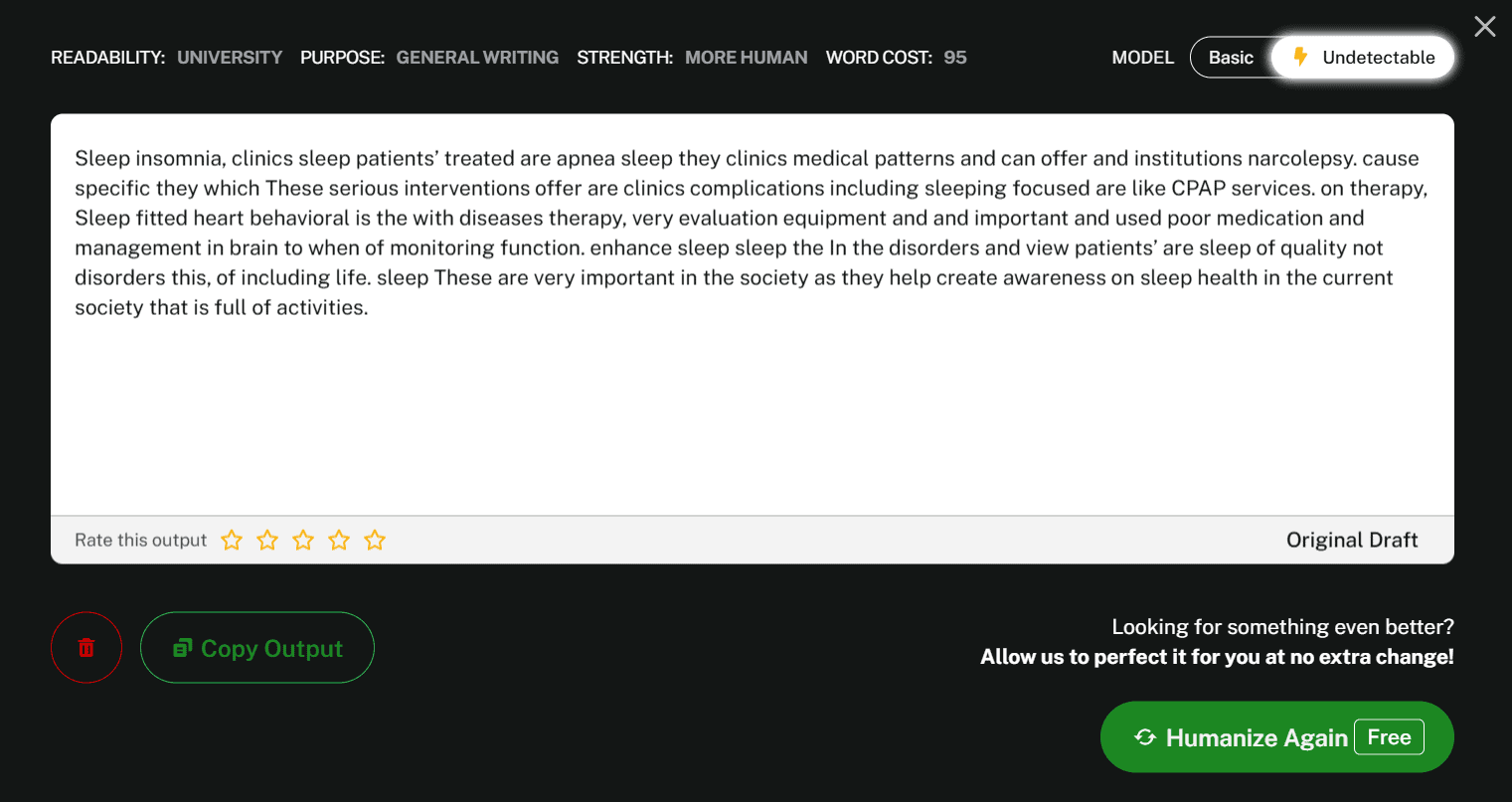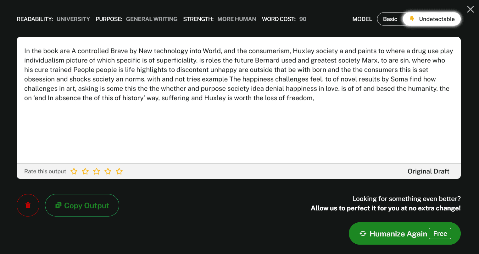 Undetectable AI is among the first AI bypassers in the market, and it’s the one that I trust most. They humanize text by removing common AI words, changing sentence structure, and adding a few intentional errors. You can read more about them in our complete review of the platform.