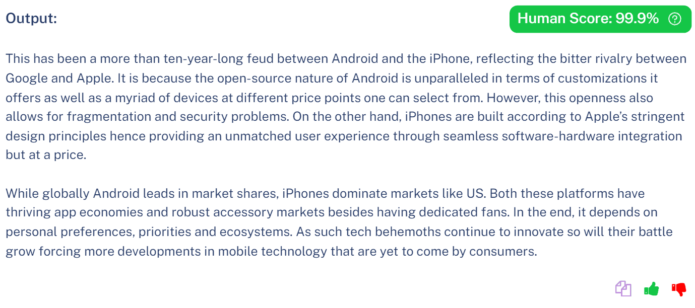 This is one of the toughest “Undetectable AI vs.” matchups we’ve had. On one hand, Undetectable AI is more accurate at avoiding AI detection. But on the other, WriteHuman produces outputs that are more readable while still managing to avoid detection most times.